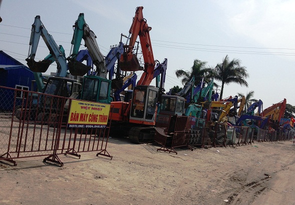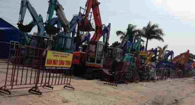 Nhiều loại máy xúc, máy ủi được tập kết tại dự án Ao Sen