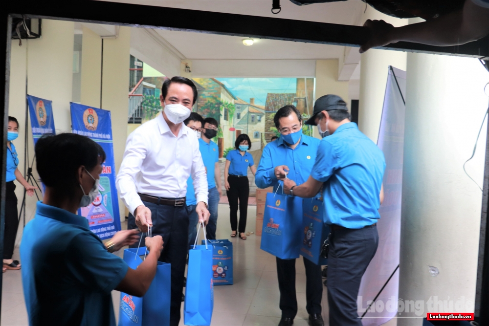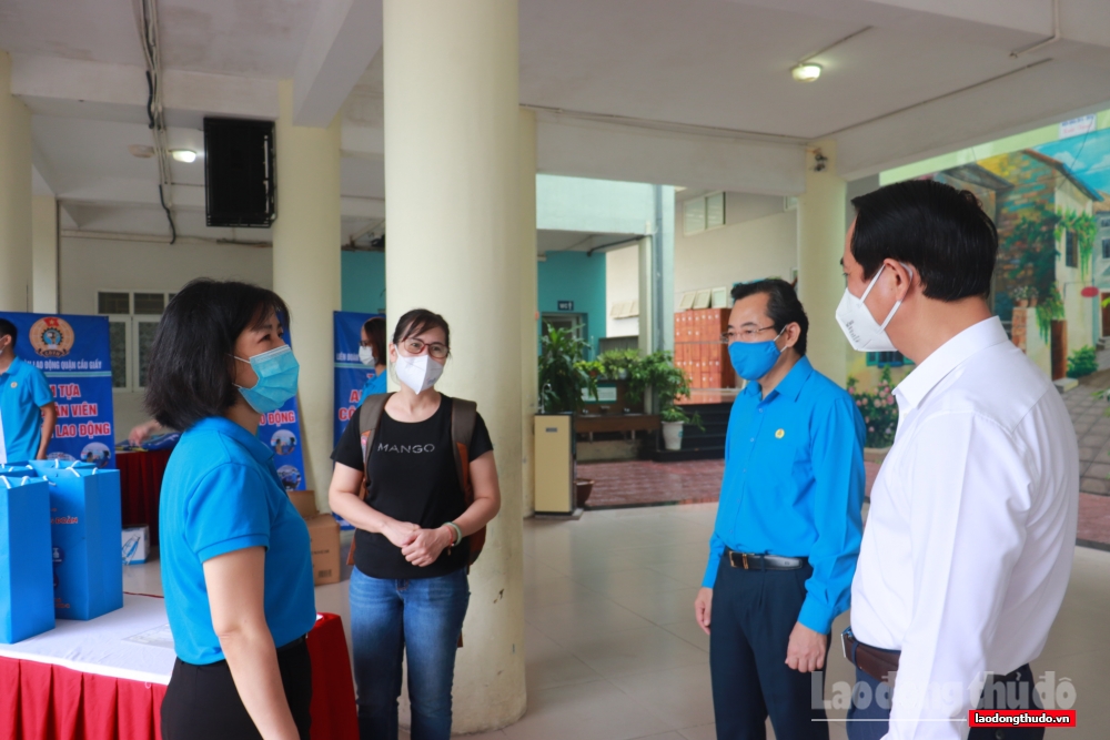 Dự và trao quà cho người lao động cùng LĐLĐ quận Cầu Giấy có ông Nguyễn Chính Hữu - Phó Chủ tịch LĐLĐ thành phố Hà Nội; ông Nguyễn Văn Chiến - Chủ tịch HĐND quận Cầu Giấy.