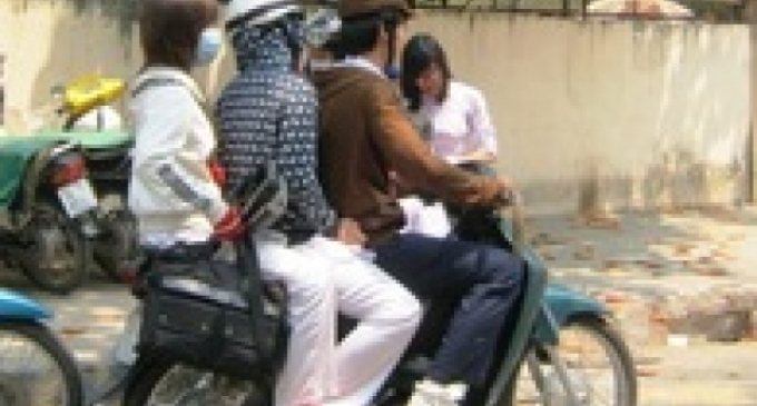 Đạo đức học sinh đang là vấn đề đáng ngại. Trong ảnh: Học sinh vi phạm luật an toàn giao thông.