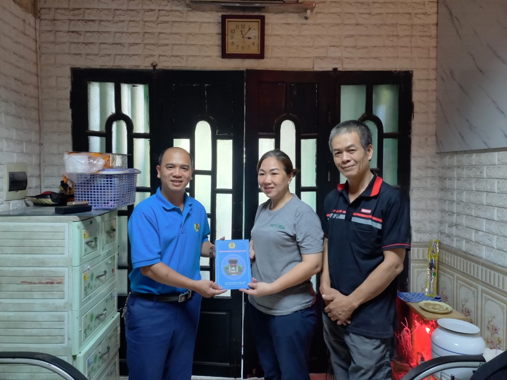 | Lãnh đạo báo Lao động Thủ đô và Hội Liên hiệp phụ nữ tỉnh Hà Tĩnh chia sẻ với người dân |