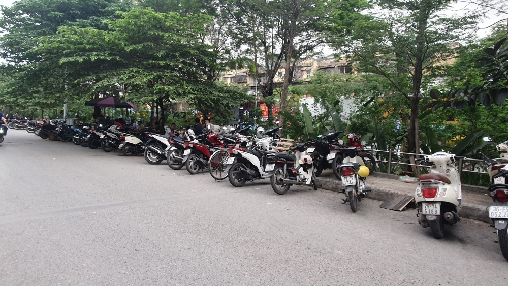 | Xe máy đỗ tràn lan trên vỉa hè hồ Hoàng Cầu (quận Đống Đa) |