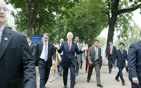 Và lại một lần nữa, sự gần gũi của ông Bill Clinton với người dân Việt Nam lại được ghi nhận. Ông đã có 15 phút ngẫu hứng vào buổi sáng đi bộ dọc phố Tràng Tiền ra Bờ Hồ. Từ anh xe ôm, bà bán kem đến ông bán báo, gặp ai ngài Bill cũng chủ động bắt tay chào trong sự ngạc nhiên và thú vị của nhiều người dân.