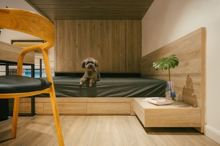 | Phòng ngủ trên gác xép được tối giản hết mức với các nội thất cơ bản như giường, tủ, bàn làm việc nhỏ. Dù diện tích không lớn nhưng các sắp xếp khoa học này cũng khiến góc nghỉ ngơi được rộng rãi và tiện nghi hơn. |