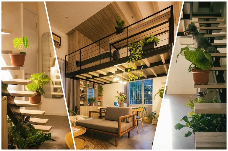 | Không gian chính của căn phòng gần như được tận dụng từng mét vuông diện tích. Sau khi cải tạo có tầng dưới là phòng khách, bàn làm việc, bếp và nhà tắm có gác xép đặt giường ngủ, tủ quần quán… “chuồng cọp” trước đây được cải tạo thành khu vực thư giãn đọc sách. |