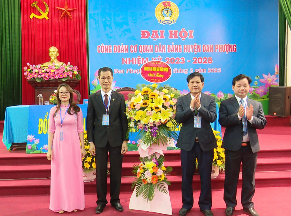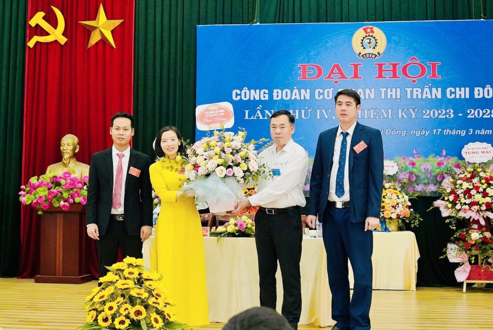 | Lãnh đạo Liên đoàn Lao động quận Tây Hồ tặng hoa chúc mừng Ban chấp hành Công đoàn Công ty. |
