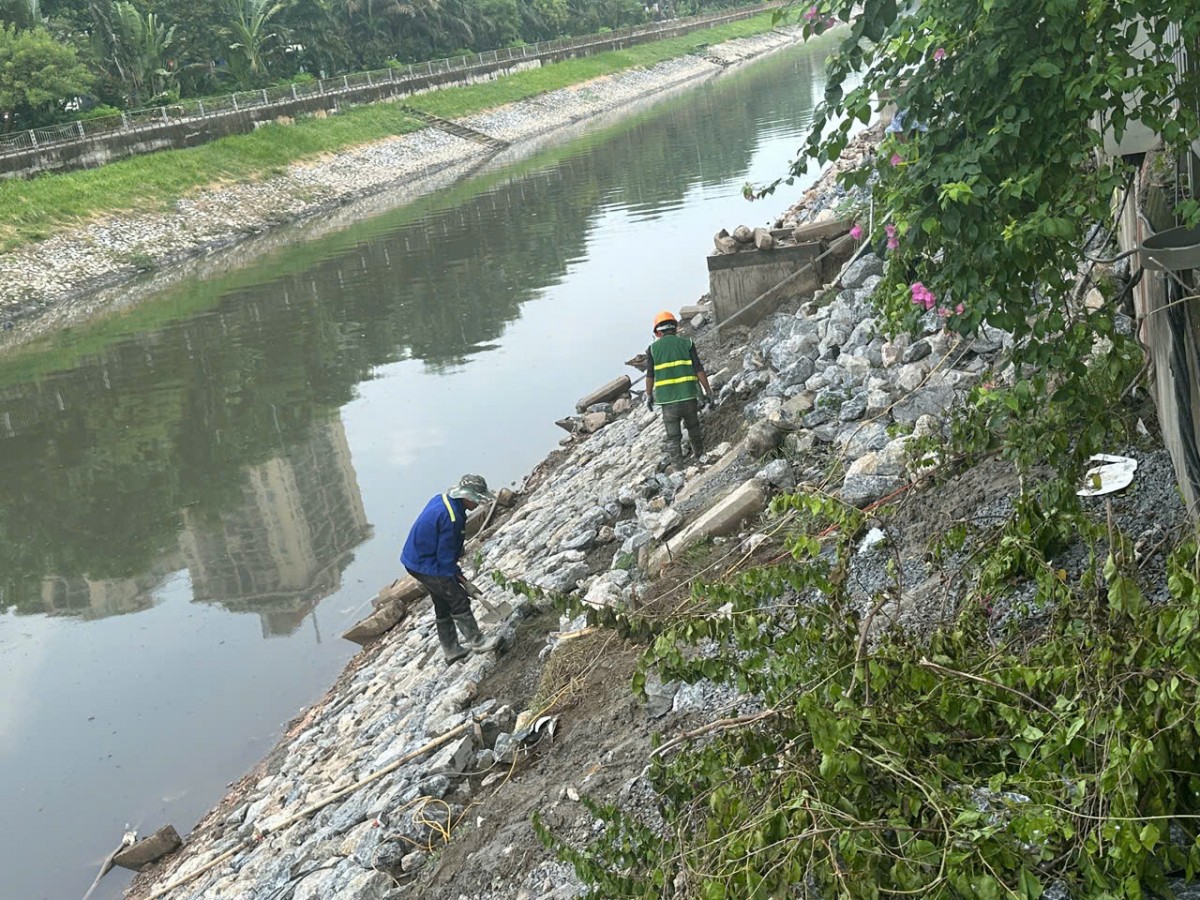 | Sau khi hoàn thành công tác kè, đơn vị thi công sẽ tiến hành phát quang cây dại trong khu vực. |