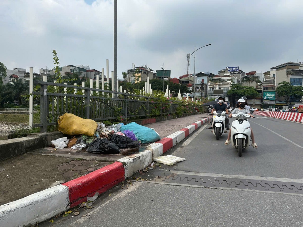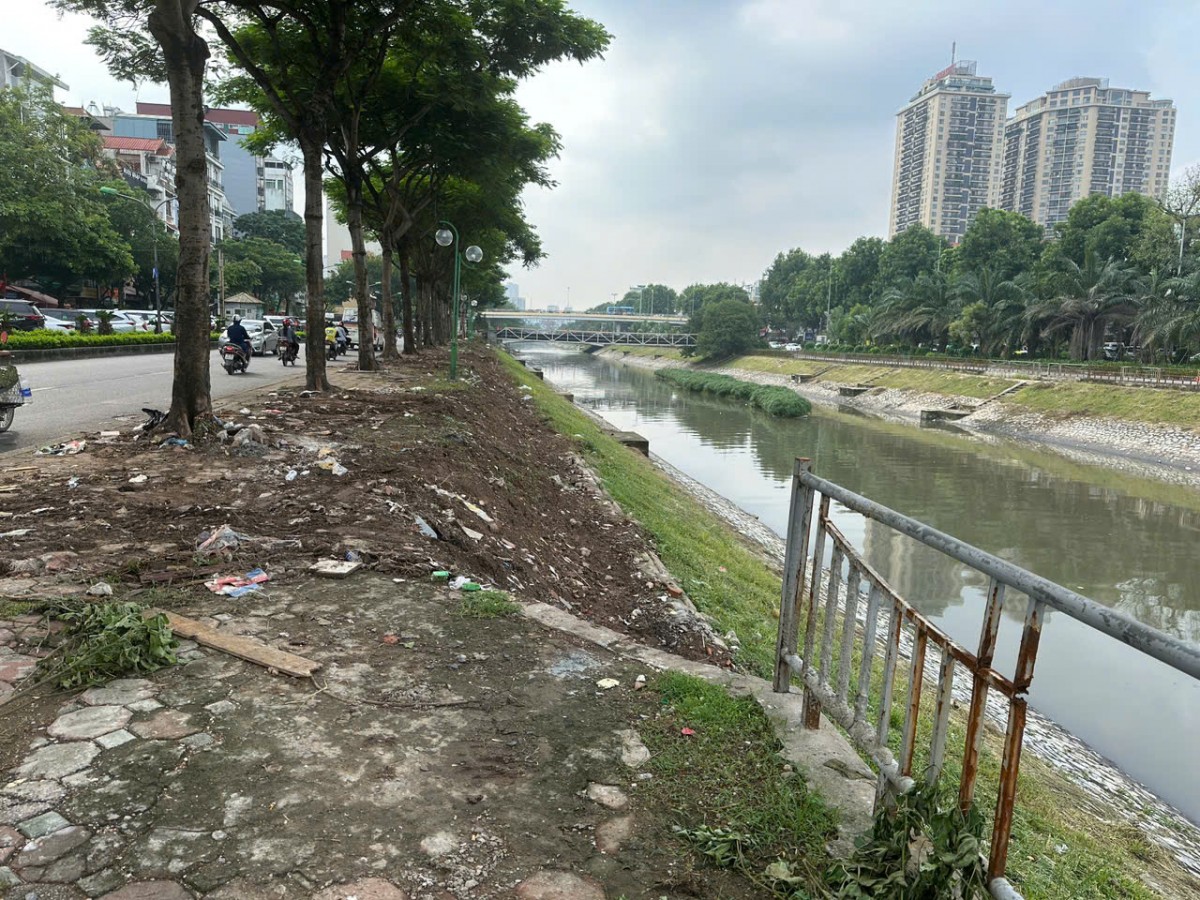 | Nhiều hạng mục trong Dự án cải tạo, chỉnh trang sông Tô Lịch đang được Hà Nội đẩy nhanh tiến độ để hoàn thành trước ngày 30/8. Mục tiêu là cải thiện môi trường, cảnh quan, và tạo không gian công cộng dọc bờ sông, tuy nhiên bên cạnh sự nỗ lực của chính quyền vẫn còn nhiều hình ảnh không đẹp dọc hai bên bờ sông. Trong ảnh là một bãi rác tự phát ngay khu vực cầu Cống Mọc, phường Thanh Xuân. |