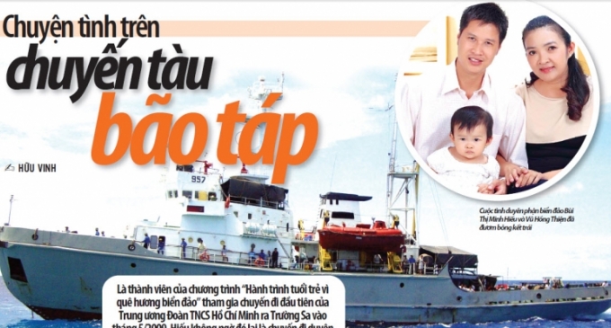 Một năm sau, năm 2010, những thành viên trong đoàn khi ấy đã có dịp gặp nhau tại Sài Gòn. Trong buổi gặp ấy, nhà báo Phạm Thị Thu Hà, báo Sinh viên Việt Nam có ghé tai tôi nói nhỏ: “Cho anh biết một bí mật, trong chuyến đi của anh em mình, có những cặp đôi yêu nhau, đố anh biết là ai?”. Tiết lộ của Hà làm tôi tò mò nhưng nài nỉ cách mấy cô ấy không nói, vì muốn giữ bí mật cho bài báo sắp tới của cô. Mãi sau này, khi lướt facebook, tôi nhận ra nick “Tí Điệu” không ai khác là Bùi Thị Ngọc Hiếu. Tôi phát hiện ra ảnh Hiếu chụp chung với một chàng trai gương mặt rất quen. Khi ấy tôi mới “ngộ” ra bí mật của Phạm Thị Thu Hà là đây. Gương mặt người thanh niên chụp chung với “Tí Điệu” chính là sĩ quan lái con tàu HQ 957 đã thực hiện cuộc hải hành bão táp “nếm mùi” cơn bão số 10, buộc tàu phải chạy ngược lên phía Malaysia để tránh tâm bão và thực hiện nhiệm vụ đưa đoàn đến đất liền an toàn.