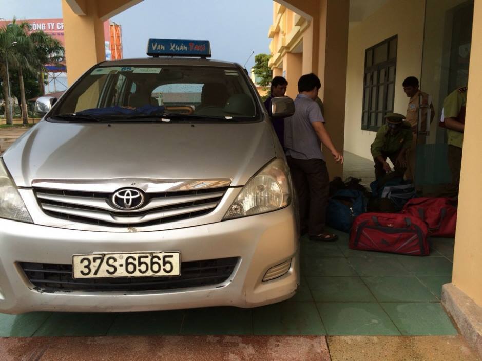 Chiếc xe ta-xi vi phạm được đưa về Trạm quốc lộ 1A Quảng Xương
