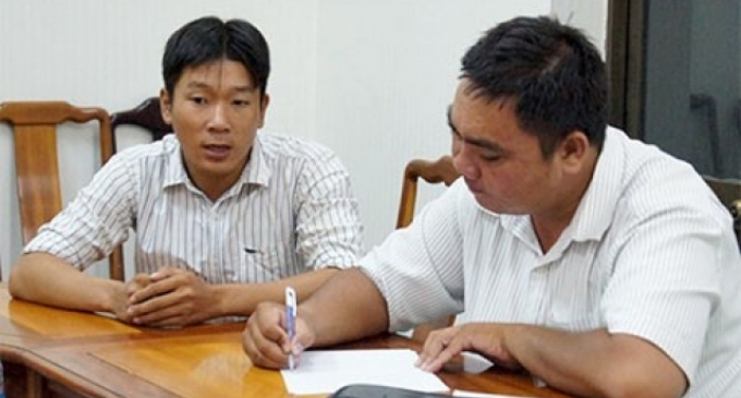 | Đối tượng Long "gà" (trái) tại cơ quan điều tra |