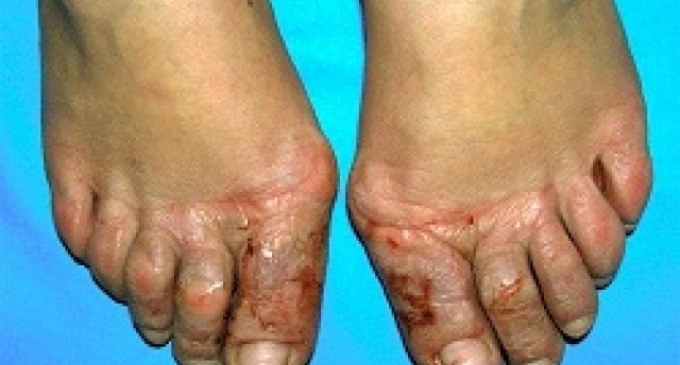 | Hình ảnh bàn chân một bệnh nhân bị dị ứng với quai dép. Ảnh: Nguyễn Hữu Trường. |