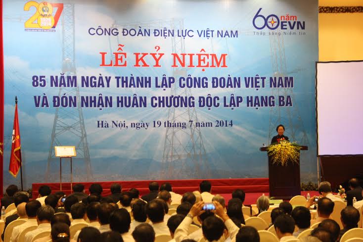 Thay mặt Đảng, Nhà nước, Phó Chủ tịch nước Nguyễn Thị Doan đã ghi nhận, đánh giá cao thành tích đã đạt được của các thế hệ cán bộ lãnh đạo ngành điện VN, đặc biệt là hơn 100 ngàn CNVCLĐ trong suốt 60 năm xây dựng và trưởng thành, góp phần làm đổi thay bộ mặt kinh tế- xã hội của đất nước. Phó Chủ tịch nước nhấn mạnh, 99% số xã trong cả nước có điện là kỳ tích lớn lao, thể hiện sự đầu tư đúng đắn của Đảng, Nhà nước và CĐ Điện lực Việt Nam đã đóng góp lớn vào thành tích đó, góp phần tô thắm thêm truyền thống lao động cần cù, anh dũng trên mọi lĩnh vực của tổ chức CĐ Việt Nam trong suốt 85 năm qua. Trong thời kỳ đẩy mạnh công nghiệp hóa, hiện đại hóa đất nước, Phó Chủ tịch nước yêu cầu CĐ Điện lực VN cần năng động sáng tạo, làm tốt vai trò quản lý ngành hơn nữa, xứng đáng với vị trí lãnh đạo giai cấp công nhân và NLĐ ngành Điện…