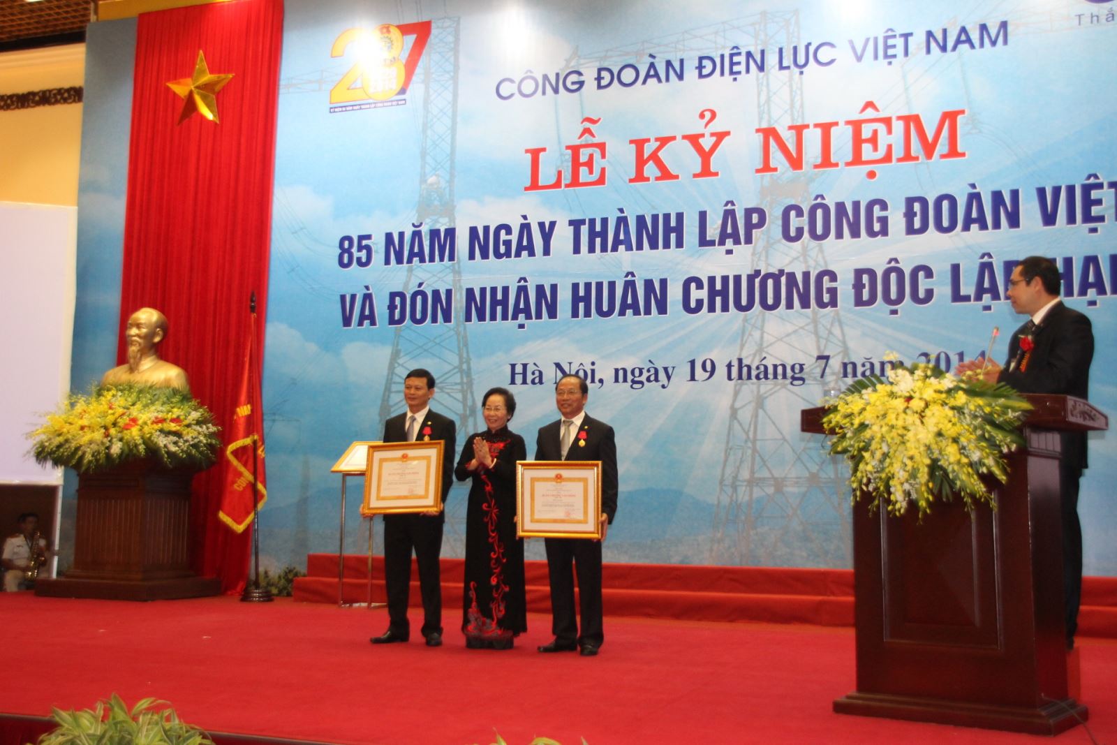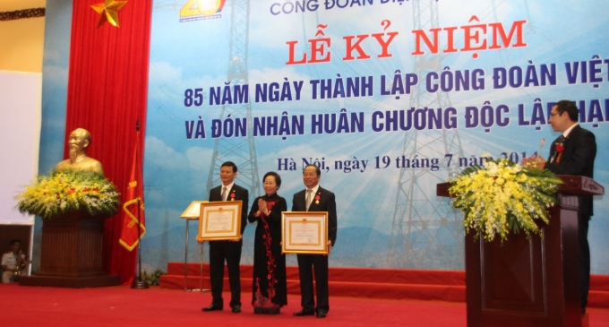 Phó Chủ tịch nước Nguyễn Thị Doan trao tặng Huân chương Độc lập hạng Ba cho đại diện CĐ Điện lực VN