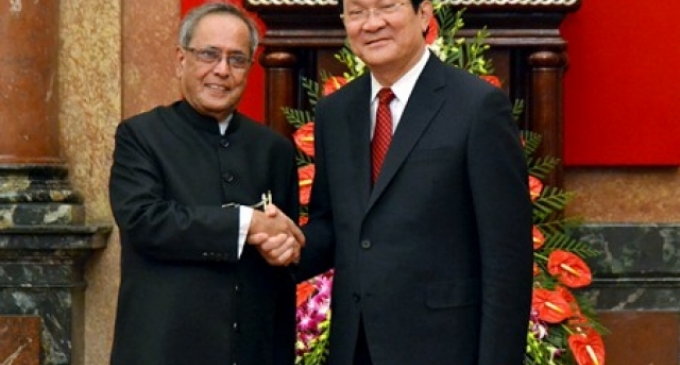 Tổng thống Pranab Mukherjee nhấn mạnh: Việt Nam là một trụ cột quan trọng trong chính sách hướng Đông của Ấn Độ. Do đó, Ấn Độ luôn sẵn sàng nâng cao hơn cả về quy mô, lẫn chất lượng trong các lĩnh vực quốc phòng và thăm dò, khai thác dầu khí với Việt Nam cũng như các lĩnh vực khác. Về quan điểm của Ấn Độ đối với vấn đề biển Đông, Tổng thống Pranab Mukherjee cho biết lập trường của Ấn Độ là ủng hộ giải quyết căng thẳng biển Đông theo đúng luật pháp quốc tế, không được sử dụng vũ lực hoặc đe dọa sử dụng vũ lực để giải quyết tranh chấp, ủng hộ tự do hàng hải...