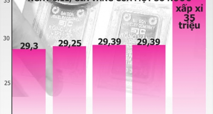 Thế nhưng, tại thị trường trong nước, giá vàng miếng SJC hôm qua ở mức 34,98 - 35 triệu đồng/lượng, cao hơn giá vàng thế giới từ 5,4 - 5,6 triệu đồng/lượng (tương đương khoảng 220 USD/ounce - PV) và “giá vàng VN cao nhất thế giới”, ông Trọng kết luận.