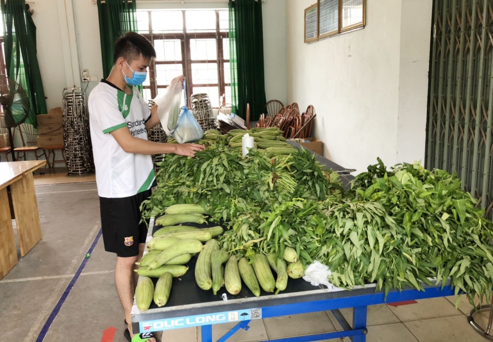 | Rau, củ, quả, gạo được cung cấp kịp thời đảm bảo nhu cầu thiết yếu của công nhân lao động |