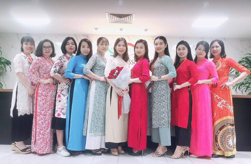 | Nữ đoàn viên LĐLĐ huyện Hoài Đức duyên dáng trong tà áo dài. |
