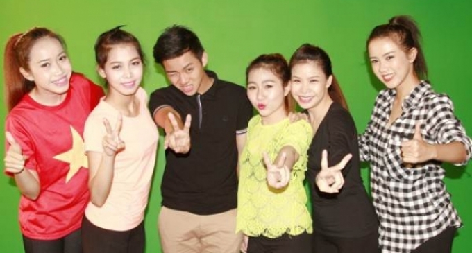 | Hoài Lâm diễn cùng với các ứng viên nữ để chọn bạn gái cho MV. |