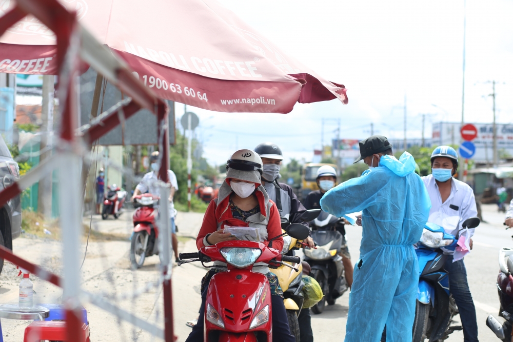 | Người dân ra khỏi nhà phải mang theo giấy tờ Phó Trưởng phòng Tham mưu Công an thành phố Lê Mạnh Hà cho biết, 12 trạm kiểm soát chốt chặn cấp thành phố, 266 chốt cấp quận/huyện đã được thiết lập trên toàn địa bàn thành phố Hồ Chí Minh. Thống kê đến 12h ngày 10/7, các chốt kiểm soát đã kiểm tra 51.890 phương tiện các loại và hơn 33.000 người. Các quận Bình Thạnh, Quận 7 và thành phố Thủ Đức là những địa bàn có lượng người đi lại nhiều nhất, Quận 6, Quận 10 và Quận 12 là địa phương có lượng vi phạm quy định phòng chống dịch nhiều nhất. Tính từ ngày đầu thực hiện Chỉ thị 16 trên toàn thành phố đến nay, cơ quan chức năng đã lập biên bản xử lý 203 trường hợp, tổng số tiền xử phạt hơn 841 triệu đồng. Liên quan đến tình hình 12 trạm, chốt kiểm soát tại các cửa ngõ thành phố, Phó Trưởng phòng Cảnh sát giao thông - Công an thành phố Nguyễn Văn Bình cho biết, lực lượng chức năng đã tiến hành kiểm tra việc đeo khẩu trang, giấy xét nghiệm âm tính Covid-19 và xử lý nghiêm các trường hợp vi phạm. Trung tá Nguyễn Văn Bình lưu ý, người dân khi qua các chốt kiểm soát ở cửa ngõ thành phố phải có giấy xét nghiệm âm tính Covid-19, khai báo y tế điện tử. Người dân có việc ra khỏi nhà phải mang theo bằng lái, giấy tờ xe, CCCD/CMND, thẻ cán bộ, nhân viên, giấy công tác,… |