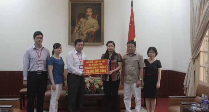Ông Nguyễn Văn Phúc, Phó chủ tịch CĐ nhà trường cho biết đây là số tiền được Ban Giám hiệu và Công đoàn Trường kêu gọi toàn thể cán bộ, giáo viên nhân viên đóng góp. Trước đó Đại học Luật Hà Nội đã có rất nhiều hoạt động hướng về Hoàng Sa, Trường Sa.