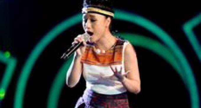 | 'Bà mẹ một con' Huyền Trang hóa thiếu nữ dân tộc, trình diễn 'Chiếc khăn piêu'. Tuy nhận được nhiều lời khen nhưng nữ thí sinh vẫn rơi vào nhóm nguy hiểm. |