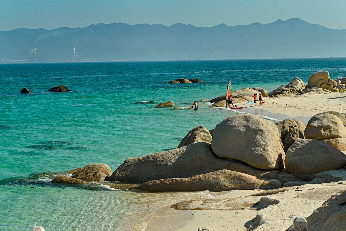 Đặt chân lên đảo, du khách được chào đón bởi bãi cát trắng mịn uốn cong hình vòng cung, ôm lấy làn nước trong xanh thấy tận đáy. Trên bờ, những khóm hoa muống biển tím biếc xen kẽ đá cuội, vỏ sò, vỏ ốc tạo nên một bức tranh thiên nhiên vừa dịu dàng vừa sống động. Bao quanh đảo là vô số khối đá đủ hình dáng kỳ thú, như một công viên điêu khắc khổng lồ do tạo hóa nhào nặn qua hàng triệu năm.
