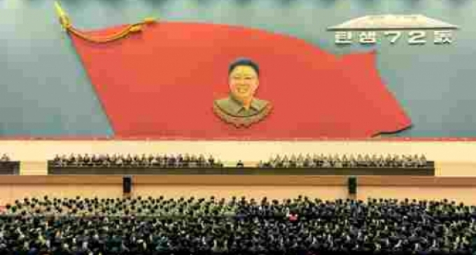 | Đài truyền hình nhà nước Triều Tiên phát đi hình ảnh lễ tưởng niệm lớn, với các quan chức vỗ tay và thề trung thành với các thế hệ lãnh đạo họ KIm. Ông Kim Jong-un ngồi chính giữa tuy nhiên không phát biểu trong buổi lễ hôm qua. |