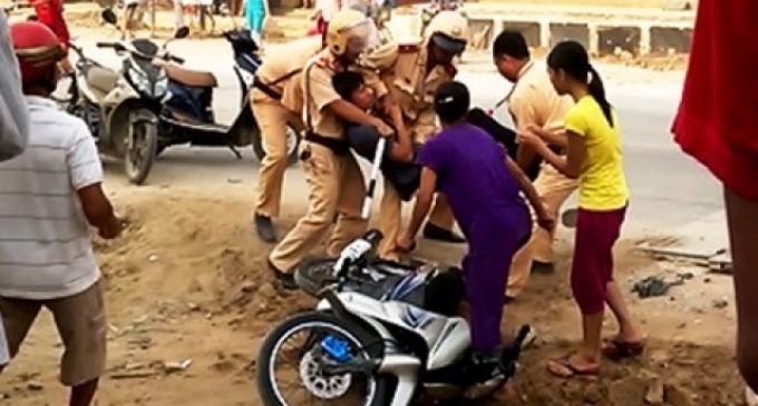 Nhưng người vi phạm đã chống đối quyết liệt bằng cách cởi áo, nhảy lên thùng xe vừa chửi bới vừa giằng co, ngăn cản không cho lực lượng CSGT mang xe về trụ sở xã Hải Ninh. Bà Phạm Thị Côi, mẹ của người thanh niên vi phạm nghe tin chạy ra hiện trường, biết con mình có lỗi bà Côi đã dùng dép đánh con, bắt anh ta đi về trụ sở UBND xã Hải Ninh làm việc.