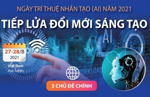 Sự kiện “Ngày Trí tuệ nhân tạo 2021 - “Tiếp lửa đổi mới sáng tạo” (AI Day 2021 - Empowering Innovations) được tổ chức trực tuyến trong 2 ngày 27/8 - 28/8/2021. Mục tiêu của AI Day 2021 nhằm thúc đẩy nghiên cứu, sáng tạo, ứng dụng AI; góp phần giải quyết những vấn đề thách thức trong phát triển kinh tế xã hội; đồng thời giúp các doanh nghiệp Việt Nam có thể ứng dụng công nghệ mới giúp tối ưu hoá năng lực cạnh tranh.