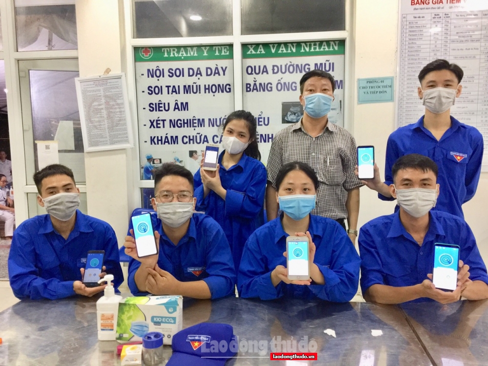 | Tại chốt kiểm soát, người dân ra - vào phường phải khai báo y tế, đo thân nhiệt, thực hiện thông điệp 5K... (Ảnh: Ngọc Anh) |