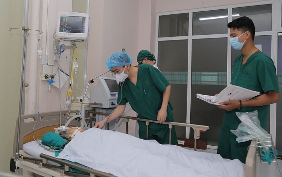 Trẻ vào Khoa Cấp cứu và Chống độc trong tình trạng rất nguy kịch, suy hô hấp, suy tuần hoàn, quấy khóc nhiều. Các xét nghiệm ban đầu ghi nhận chỉ số viêm tăng cao, rối loạn đông máu, tăng men gan, suy thận cấp. Ngay lập tức, các bác sĩ nhận định, đây là tình trạng nhiễm khuẩn huyết, sốc nhiễm khuẩn. Trẻ được đặt ống nội khí quản, bù dịch, sử dụng thuốc vận mạch và kháng sinh phổ rộng để ổn định sau đó chuyển lên Khoa Điều trị tích cực Nội khoa.