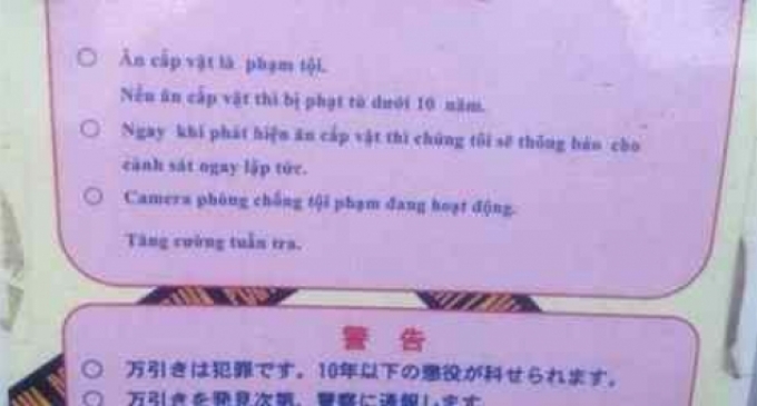 Không chỉ ở Nhật Bản, mà các nước và vùng lãnh thổ khác như Thái Lan, Đài Loan cũng đều có biển cảnh báo về thói trộm cắp vặt của người Việt.