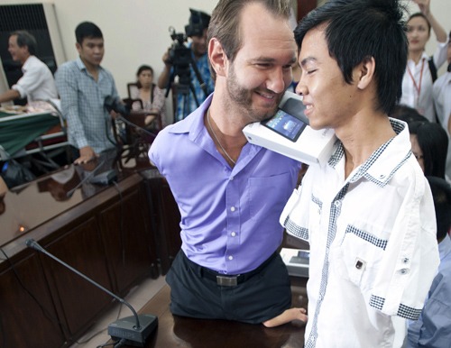Nick Vujicic tặng xe lăn, máy tính bảng cho người khuyết tật VN