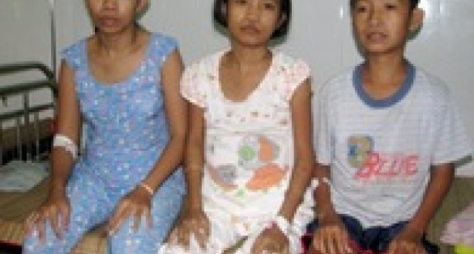 Khi gặp các con bà Nga đang nằm điều trị tại bệnh viện Đa khoa Vĩnh Long, chúng tôi không khỏi chạnh lòng. Hình ảnh Cẩm Tú, Cẩm Hường, Hoàng Thiện mỗi người nằm một giường với cơ thể ốm yếu, xanh xao và bà mẹ ngoài 50 tuổi tất bật hết chăm con gái đến săn sóc con trai khiến những người trong phòng rất xót xa. Trông 3 người con của bà Nga già hơn nhiều so với cái tuổi mới ngoài 20 và không biết “ra đi” bất cứ lúc nào nếu thiếu máu.