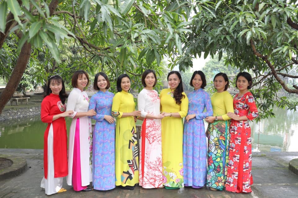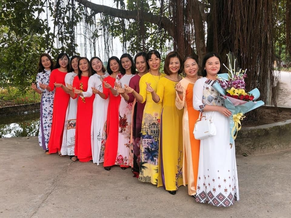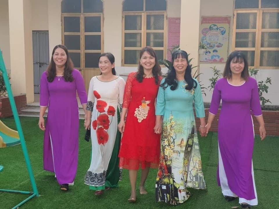 | Cán bộ, giáo viên Trường Mầm non Phượng Dực duyên dáng trong tà áo dài |