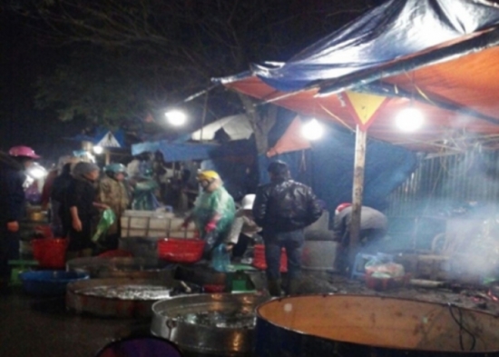 Ngày nào chợ cũng bắt đầu hợp từ 2 giờ đêm đến 7 giờ sáng. Các phương tiện ô tô, xe máy thay nhau vào bốc hàng, dỡ hàng gây ồn ào, mất trật tự, ảnh hưởng không nhỏ đến giờ nghỉ ban đêm của các hộ dân xung quanh. Mặt hàng chủ yếu tại đây là thủy – hải sản nhưng khu vực họp chợ lại tạm bợ, không có hệ thống thoát nước riêng biệt nên nước thải sau mỗi buổi chợ đều được đổ “tự nhiên” ra lòng đường, ngấm dần xuống đất hoặc trôi chảy vào cống thoát nước sinh hoạt của người dân.