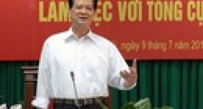 Phát biểu tại buổi làm việc với Tổng cục Thuế sáng 9/7, Thủ tướng Nguyễn Tấn Dũng yêu cầu "bằng mọi biện pháp, tập trung rà soát, cải cách thủ tục hành chính theo các tiêu chí cụ thể nhằm giảm số lần, thời gian nộp thuế của người dân và doanh nghiệp" - Ảnh: VGP/Nhật Bắc