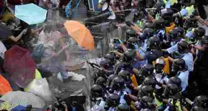 Cảnh sát Hong Kong xịt hơi cay và người biểu tình.