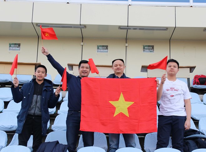 | Sau lưng anh, Vũ Minh Tuấn và Công Phượng hợp thành bộ đôi tiền đạo lùi. (Ảnh: VFF) |