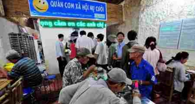 | “Tiền thiêng liêng” Ông Nguyễn Minh Lộc (Nam Đồng, nguyên tổng biên tập báo Pháp Luật TP.HCM, chủ nhiệm quán Nụ Cười) cho biết sau mấy ngày hoạt động, có thể ước tính về thành phần khách như sau: 30% là sinh viên, học sinh; 30% là bà con bán vé số, xe đẩy, xe ôm, đạp xích lô, lượm ve chai, thợ hồ...; 25% là bệnh nhân, thân nhân nuôi bệnh ở Bệnh viện Da liễu và Bệnh viện Mắt; 15% không xác định được thành phần, ăn mặc sạch sẽ, lịch sự. Quán cơm xã hội Nụ Cười thuộc quỹ từ thiện Tình Thương. Quỹ được sự đóng góp của nhiều nhà hảo tâm. Trong “10 nguyên tắc ứng xử cho các thành viên quỹ từ thiện Tình Thương” có ghi: “Những đóng góp dù ít hay nhiều đều xuất phát từ tấm lòng hướng thiện. Những đồng tiền đó rất dễ thương, rất đáng quý nên chúng ta gọi là tiền thiêng liêng...”. Tiền thiêng liêng nên chỉ dành toàn bộ để chi cho người nghèo, không chi bất cứ một đồng nào cho “bộ máy” quản lý, tất cả đều là tình nguyện viên. |