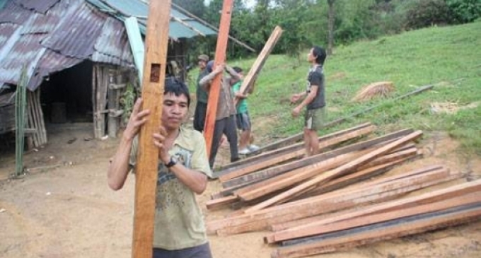 Sau một ngày nhờ anh em, hàng xóm chuyển gỗ vào rừng để dựng nhà, sáng 24.10, anh Hồ Văn Thiện (40 tuổi, trú tại thôn 1, xã Trà Đốc, H.Bắc Trà My) cho biết đã gom đủ số gỗ cần thiết.