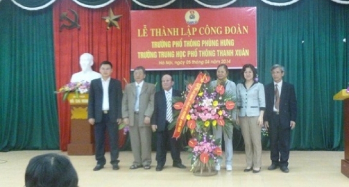 Nhận thức tầm quan trọng của tổ chức công đoàn trong công tác chăm lo, bảo vệ quyền và lợi ích hợp pháp, chính đáng cho CBGV-NV và trong các hoạt động của nhà trường nên Trường THPT Phùng Hưng và Trường THPT Thanh Xuân đã thành lập tổ chức CĐ và kết nạp 12 đoàn viên mới. Đồng chí Trần Thị Thu Hà - Chủ tịch Công đoàn ngành Giáo dục Hà Nội tặng hoa chúc mừng và giao nhiệm vụ cho ban chấp hành Công đoàn lâm thời của 2 đơn vị.