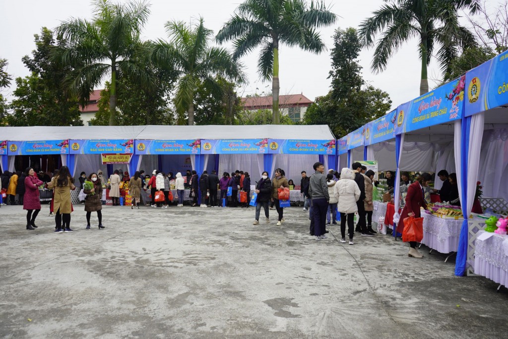 Theo Ban Tổ chức, chương trình năm nay đã thu hút khoảng 16 - 20 gian hàng phục vụ đoàn viên, công nhân lao động (các gian hàng công đoàn theo khối xã, thị trấn và gian hàng của các doanh nghiệp). Hàng hóa tham gia là các sản phẩm thiết yếu gồm: Sữa, bánh kẹo, lương thực, thực phẩm thiết yếu, nước mắm, mì chính, dầu ăn, giò chả, đồ gia dụng và một số sản phẩm đạt tiêu chuẩn OCOP của huyện...