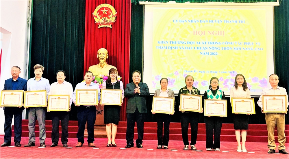 Ủy ban nhân dân huyện cũng vừa khen thưởng đột xuất 5 tập thể, 46 cá nhân có thành tích xuất sắc trong công tác phục vụ thẩm định xã đạt chuẩn NTM nâng cao năm 2022.