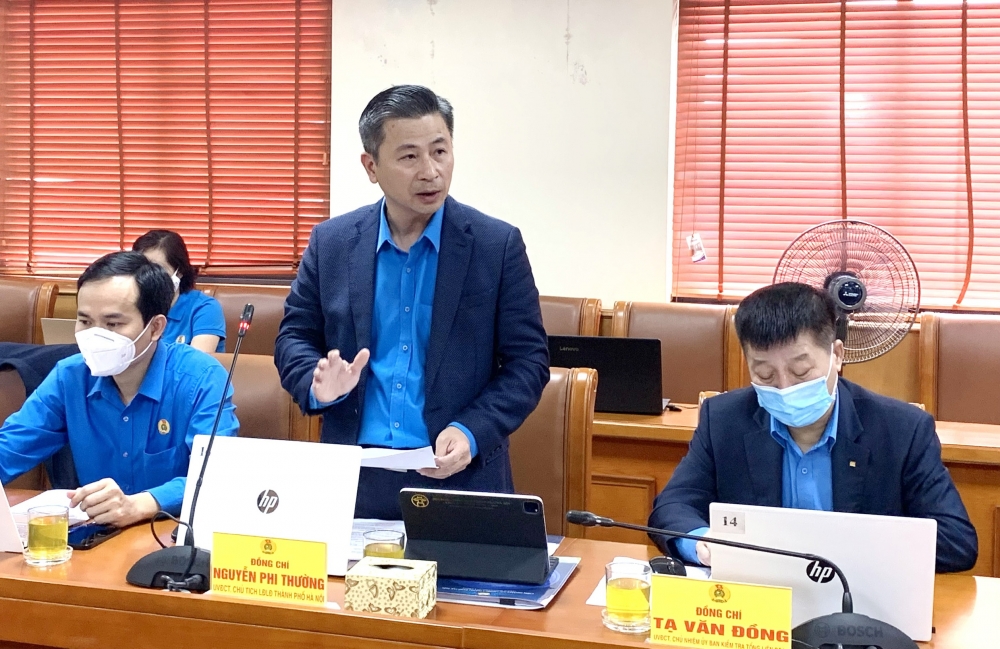 | Đồng chí Nguyễn Phi Thường - Đại biểu Quốc hội, Ủy viên Đoàn Chủ tịch Tổng LĐLĐ Việt Nam, Thành ủy viên, Chủ tịch LĐLĐ thành phố Hà Nội phát biểu tại buổi thăm, làm việc với báo Lao động Thủ đô. Ảnh: Mai Quý |