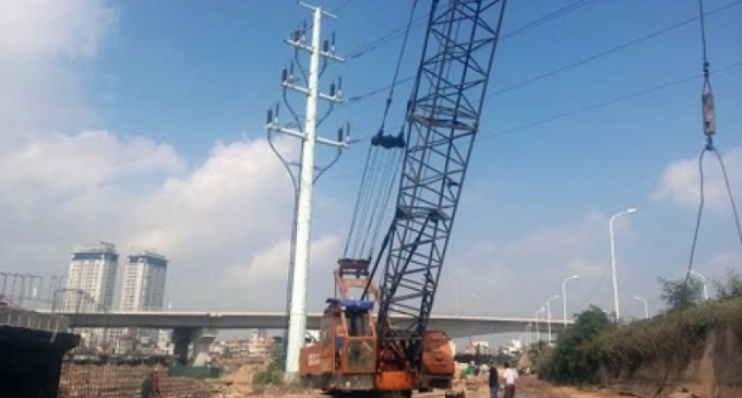 Xe cẩu thi công cầu Nhật Tân gây sự cố lưới điện