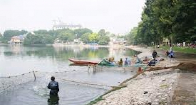 | Một nhóm người tiến hành quây lưới, bắt cá ở hồ Thiền Quang (Hà Nội). Ảnh: Trường Phong. |